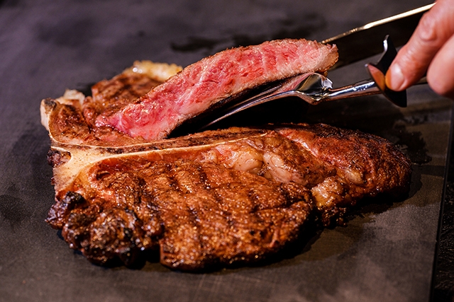 これまで和牛のTボーンが実現できなかった理由のひとつは、BSE問題で国産の骨付き肉の提供が制限されていたこと。もうひとつは、牧場や精肉店にとってTボーン用の特殊な加工の手間を取るメリットがあまりないためだ。