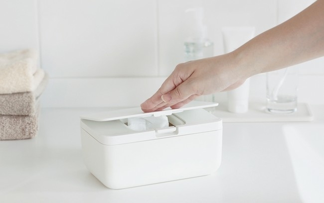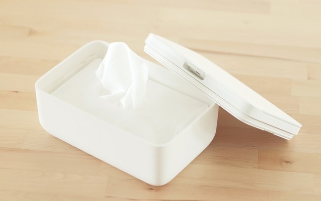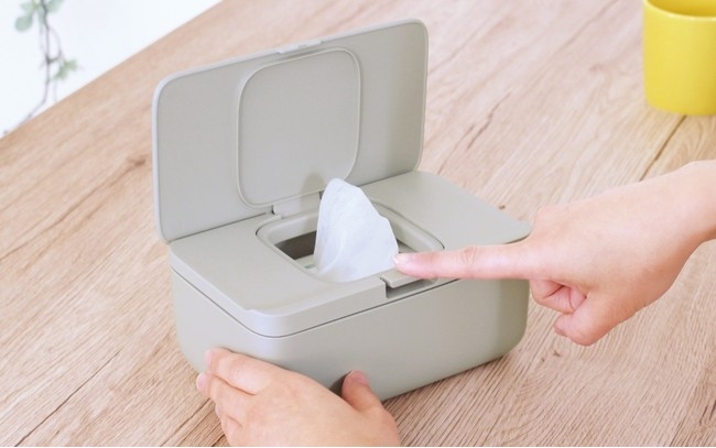 この度の「シートケース」は、フタにシリコーンゴムのパッキンが付いておりしっかり閉まるため、ウェットシートの乾燥を防ぎます。開封すると乾燥しがちなウェットシートも最後までしっとりお使いいただけます。ボタンを押すとワンタッチで開くため、サッと取り出せます。