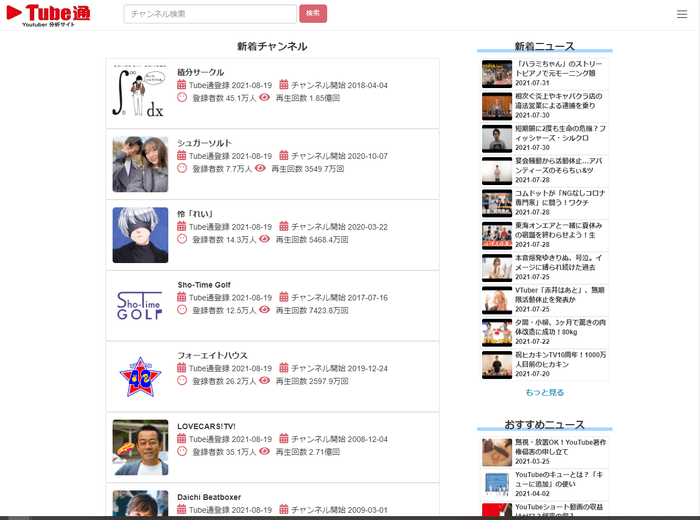 Youtubeチャンネルのデータ解析ができるWebサイト 「Tube通」をウェブスタイルが開設