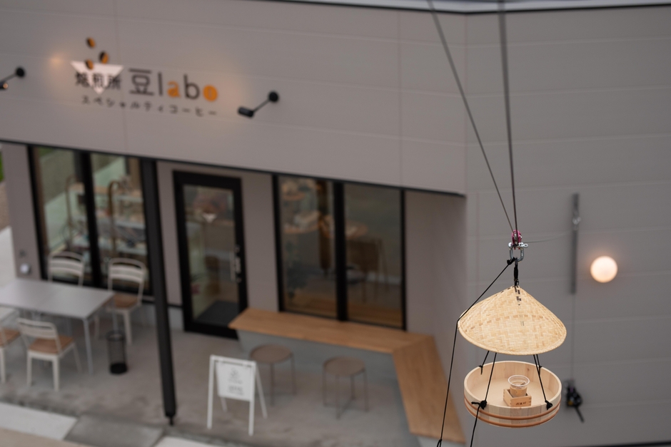 兵庫県・丹波市にて、「プライベートサウナ天空」を展開する、株式会社フィジカル・アイ(代表取締役:足立 勲)は、この度、併設する同社運営の「焙煎所 豆labo」とのコラボ企画として「空飛ぶコーヒー」の提供を2024年5月21日(火)より開始いたしました。こちらはサウナをご利用の方限定のサービスで、テラスから合図を送ると、敷地内・向かいにある「焙煎所 豆labo」より自家焙煎豆を使用したアイスドリンクが籠に乗って運ばれてきます。その光景はまさに「空飛ぶコーヒー」。ご自身のスマートフォンで、動画や写真も撮影いただけます。