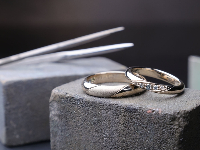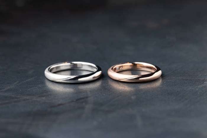 シンプルなデザインから、ダイヤモンドやカラーストーンを施したもの、リング形状を変形させたものまで、職人がいるからこそ細かなアレンジが可能です
