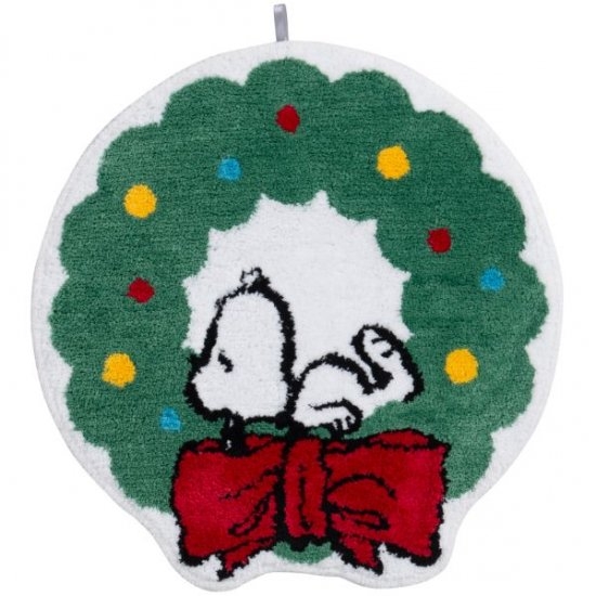 さらにクリスマス気分が盛り上がる、アクセントマットたちもご紹介していきます。サンタ帽をかぶったスヌーピーは、この時期ならではの可愛らしさが味わえます。フックも付いていて、インテリアラグとしてもOK