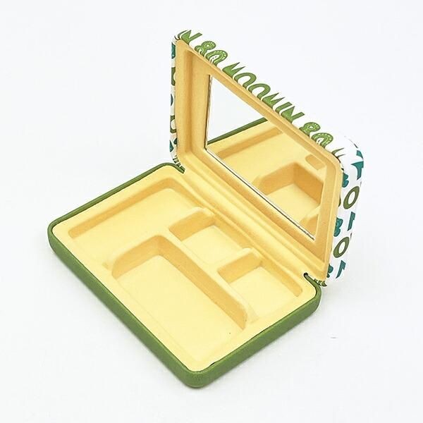 中は仕切りがついていて種類を分けて収納できます。ミラー付きなのでアクセサリーをつけるときに便利です。ハードケースなのでアクセサリーを衝撃から守ってくれます。サイズ:10cm×6.8cm×2cm