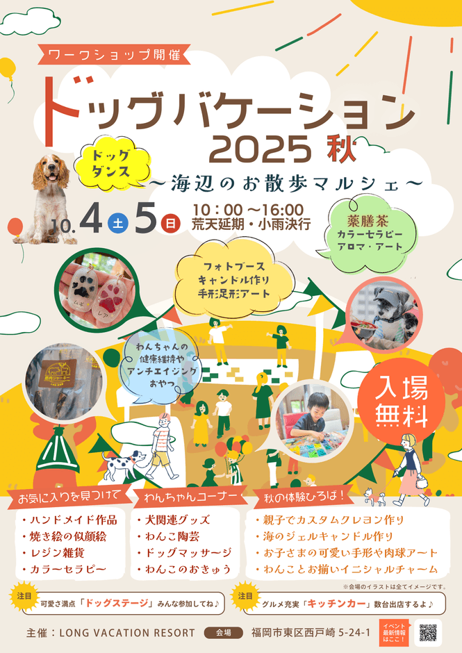 福岡市東区でBeach House型の飲食サービスを展開するLONG VACATION RESORT(所在地:福岡市東区西戸崎5丁目24-1)は、愛犬家向けの春季特別イベント『ドッグバケーション2025秋 ~海辺のお散歩マルシェ~』を2025年10月4日(土)・5日(日)に開催いたします。