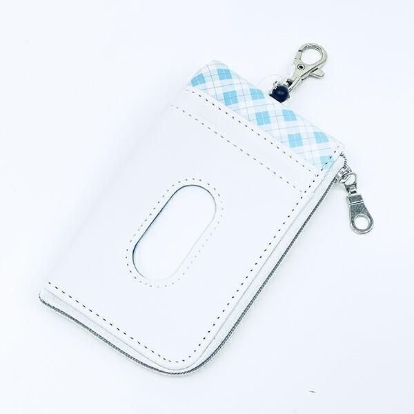 中にキーリングが付いていて鍵など付けることができます。裏側にはカードポケット付いて、大切な鍵やパスピーをこれひとつでまとめて収納ができます。また、ホルダー部分が伸びるのでカバンに付けたまま使えるというのも便利なポイントです。サイズ:12cm×7cm×0.3cm 素材:合成皮革