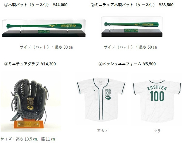 ミズノ社製のバット、グラブ、ユニフォームが 球場100周年デザインとなって登場! ~本日から、販売を開始します~
