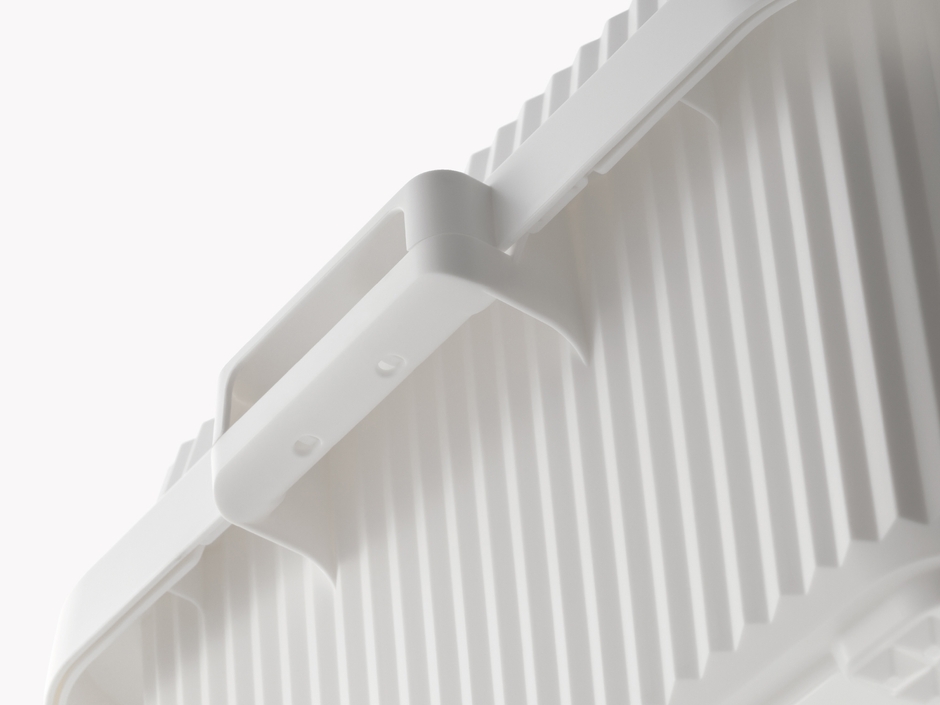 フタはロック式でフタを押し込むことでロックがかかり、フタの片側を上に持ち上げることで簡単に開閉することができます。またハンドル部分に丸みを持たせることで指がかかりやすく、コンテナーの運搬時の負担を軽減します。ハンドル耐荷重は100kgまで対応。
