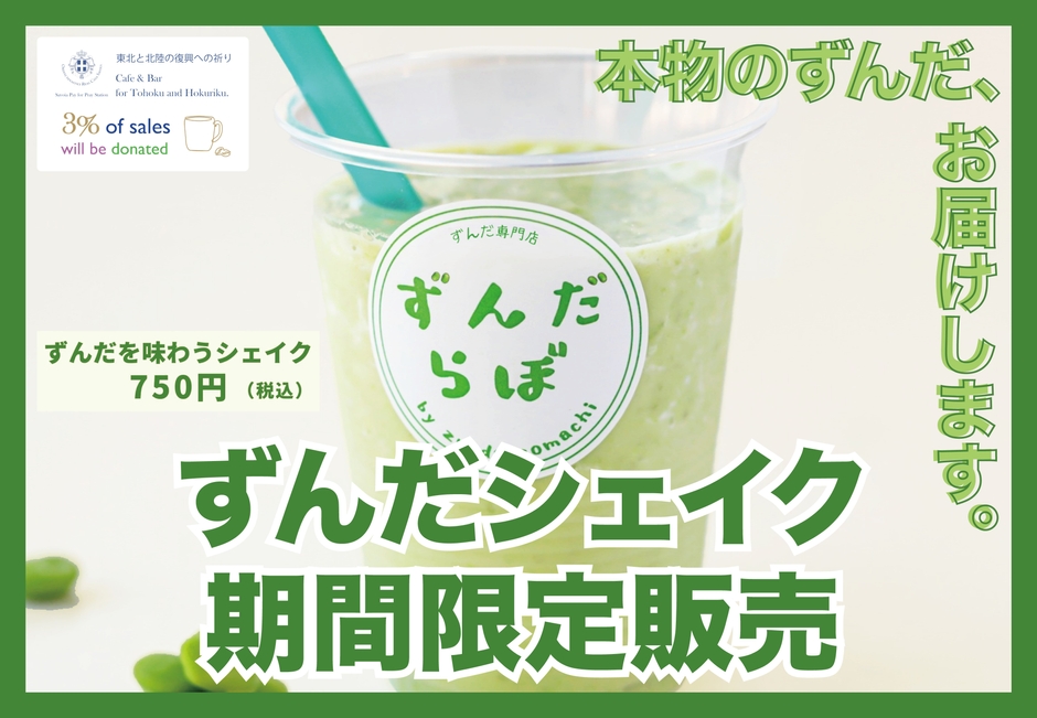 今回のPOPUPストアへの出店では、看板メニュー『ずんだを味わうシェイク』の提供になります。