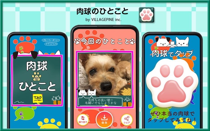 スマートフォン向けアプリの開発・運営する株式会社 Villagepine(ビレッジパイン)(本社:東京都荒川区、代表取締役:村松直樹)は、2020年10月8日にペットのワンちゃんネコちゃんのかわいくて、ちょっと笑える”ひとこと”を添えた「ひとこと画像」を撮影することができるカメラアプリ「肉球のひとこと」をiOS、Android端末向けにリリースいたしました。