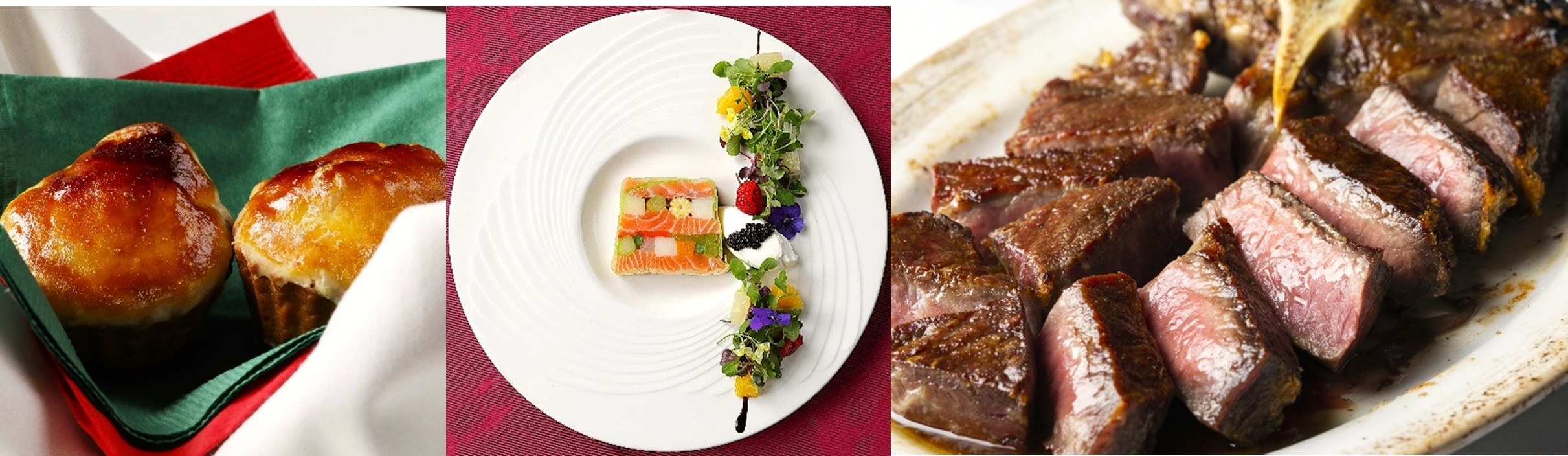 ランチには、熟成肉を使用した自家製パイ、シェフ特製の濃厚なスープ、最上級プライムビーフのフィレミニョンステーキに自家製フォアグラバター、赤ワインソースを合わせた贅沢な一皿をご堪能いただけます。デザートにはクリスマス限定の自家製アップルパイのデザートと最後まで大満足のクリスマス特別ランチコースをお楽しみいただけます。