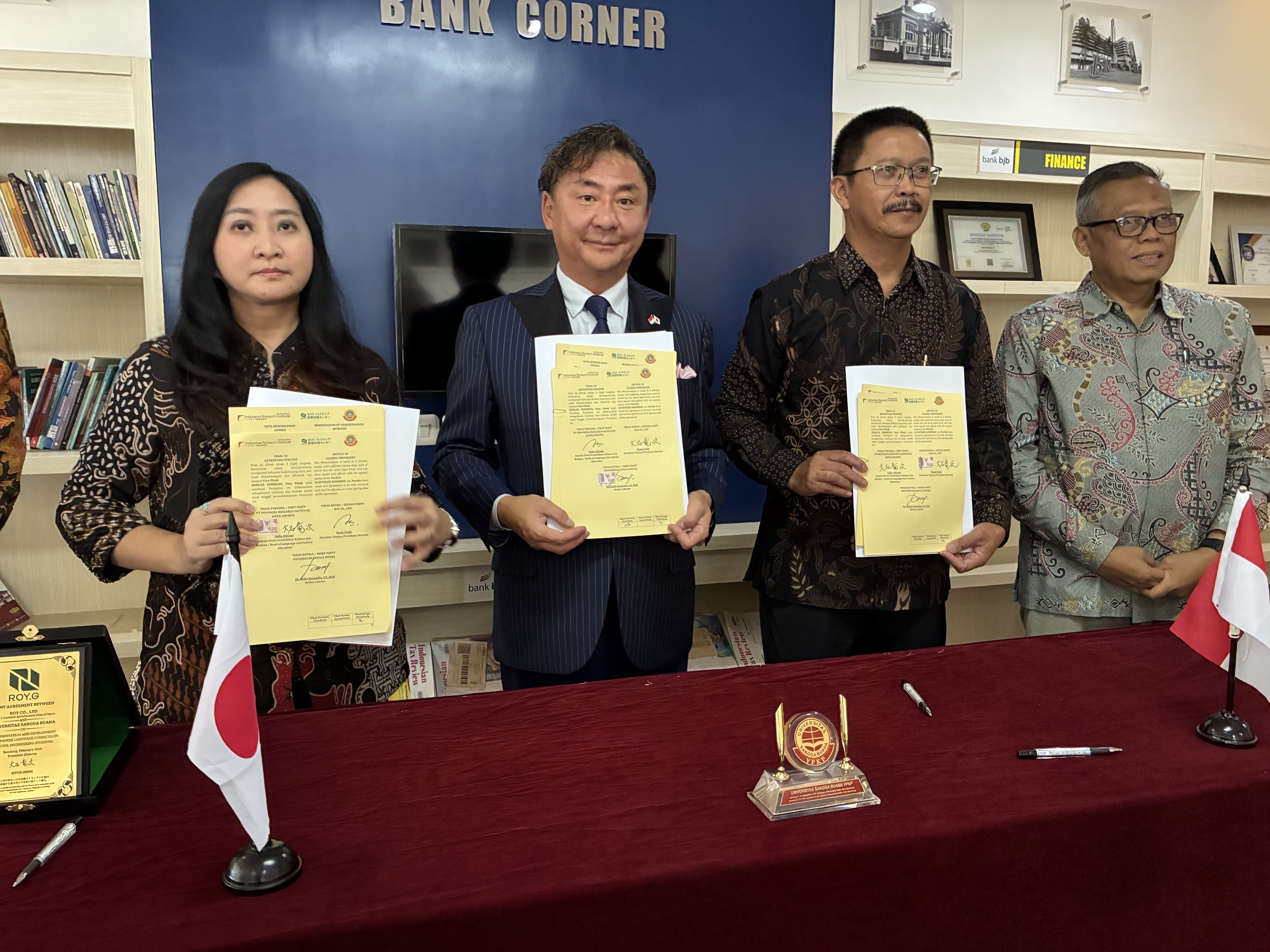 株式会社インドネシア総合研究所を通じたご縁をきっかけに、同日、SANGGA BUANA UNIVERSITYとも覚書を締結しました。