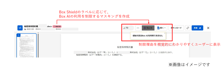 一例として、機密文書ラベルをトリガーにBox AIの利用を自動制御することが可能です。意図しない利用を防止し、企業ポリシーに沿った安全な運用を実現します。