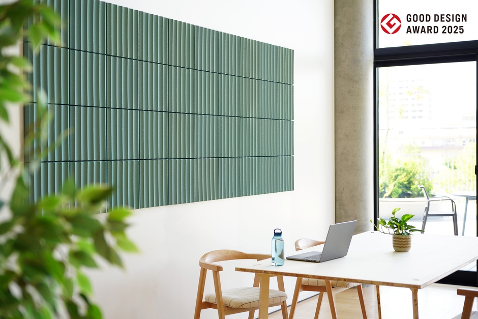紙再生材を100%使用したサステナブルな吸音パネル 「REBORN PULP吸音パネル」が2025年度グッドデザイン賞を受賞 2025年10月15日(水)より先行予約開始