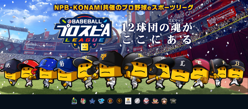 「eBASEBALLプロスピAリーグ」(通称:スピリーグ)は、モバイルゲーム「プロ野球スピリッツA」を使用した、日本野球機構(NPB)とコナミデジタルエンタテインメント共催のプロ野球eスポーツリーグです。プロ野球12球団を代表する各球団3名、計36名のプロプレイヤーがセ・リーグとパ・リーグのeペナントレースを戦い抜き、日本一を目指します。