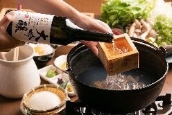 当時関西では中々手に入らない最高級の食材の味に感動し、この食材の旨味を最大限に活かす食べ方を日々考えていたところ、当店の大吟醸鍋との掛け合わせに気づきました。大吟醸の旨味と金華豚の旨味が合わさり今までに食べた事のない新しい鍋が誕生しました。金華豚の旨味を最大限に活かす為に鍋出汁を改良し、金華豚から取った出汁を入れ味付けも変えました。