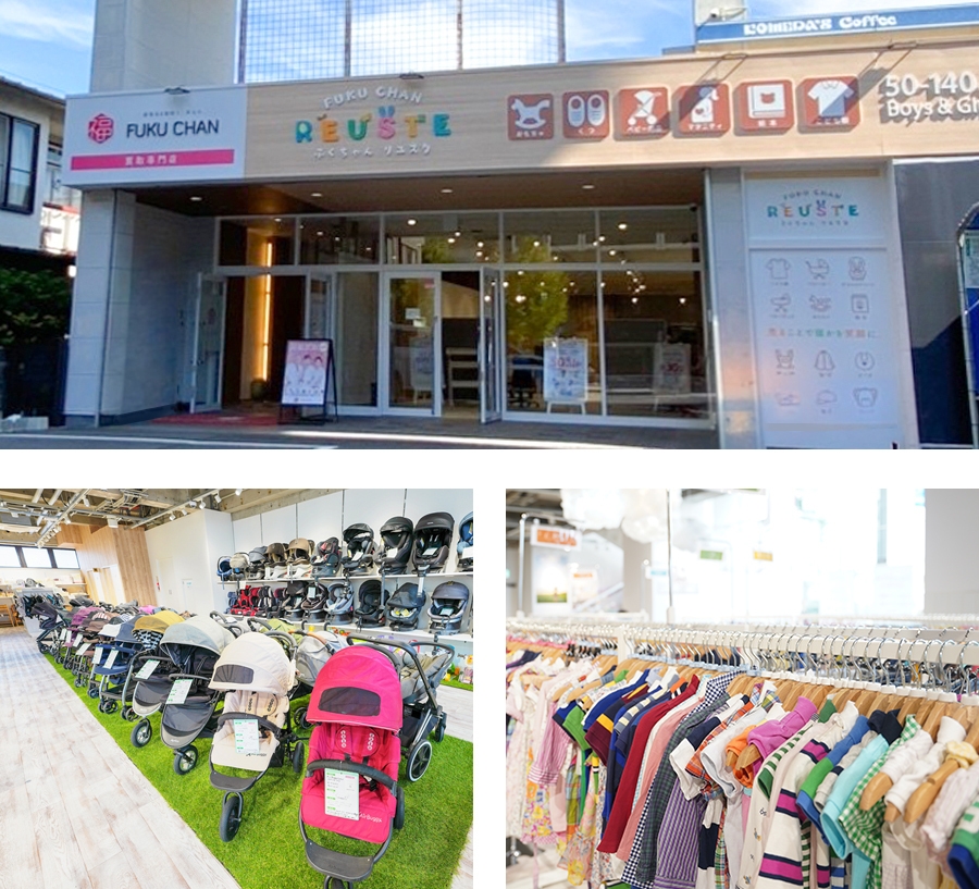 高品質なリユースアイテムだけでなく、おもちゃの量り売り等、「ふくちゃんリユスタ」だからこその遊び心を随所に施し、居心地のいい店舗として地域で一番の“つなぐ場所”をご提供します。