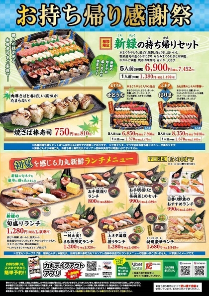 回転寿司力丸 新緑の寿司フェアを期間限定開催! ~初夏を感じる期間限定の旬の魚介をリーズナブルに~