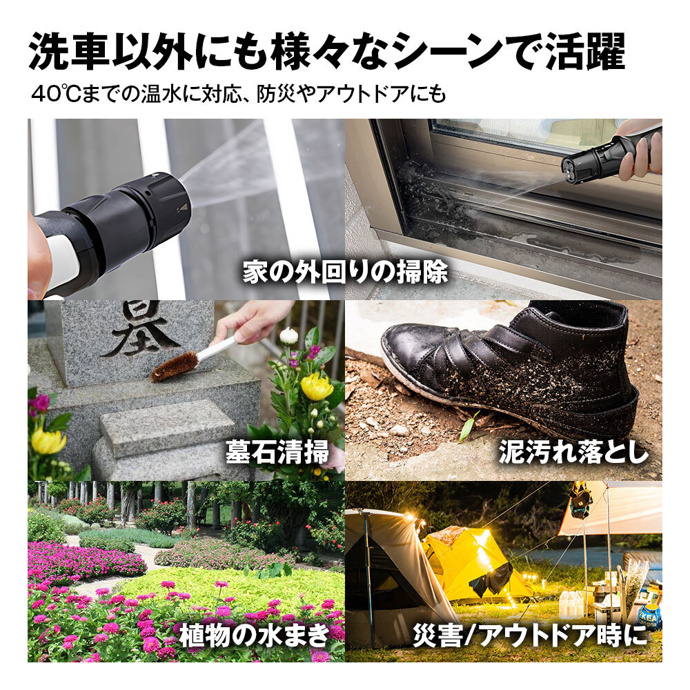 ベランダ床、網戸、自転車、軽自動車、キャンプ用品など強すぎない、ちょうどいい水圧だから安心。