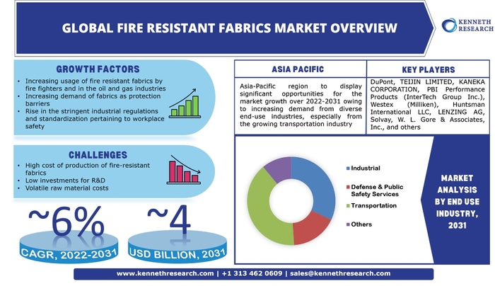 リサーチ・ネスターの一部門であるケネス・リサーチは最近、「耐火性ファブリック市場:世界の需要分析と機会の見通し2031」と題する調査レポートを発表し、タイプ、用途、最終用途産業、地域別の市場セグメンテーションの観点から耐火ファブリックの詳細な概要を提供しました。