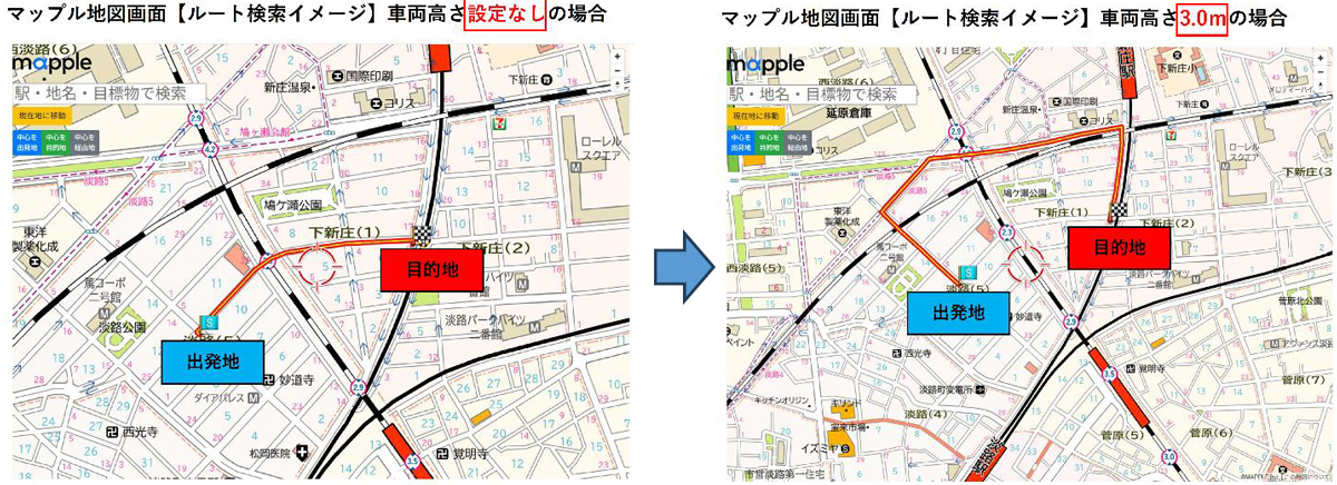 阪急電鉄株式会社(代表取締役社長:嶋田 泰夫、以下「阪急電鉄」)と阪神電気鉄道株式会社(代表取締役社長:久須 勇介、以下「阪神電気鉄道」)は、鉄道・道路交差部における鉄道橋梁への自動車衝突事故の抑制対策として、西日本旅客鉄道株式会社 近畿統括本部(執行役員 近畿統括本部長:冨本 直樹、以下「JR西日本」)と株式会社マップル(代表取締役:大日方 祐樹、以下「マップル」)が共同で作成したデジタルマップに対し、沿線の鉄道・道路交差部の高さ制限情報の提供を12月19日(金)から開始します。これにより、デジタルマップ上で高さ制限を確認できる範囲がさらに拡大します。