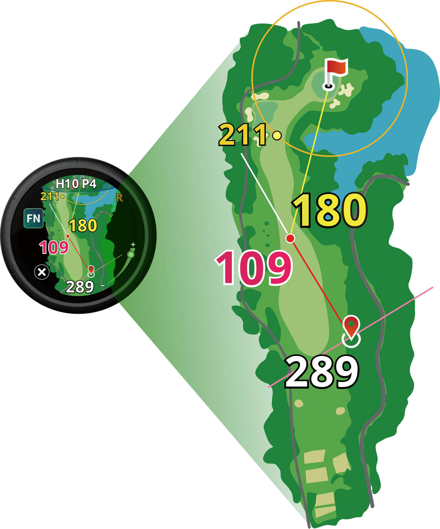 本当に必要な距離をナビゲーションするShot Navi独自の機能です。
