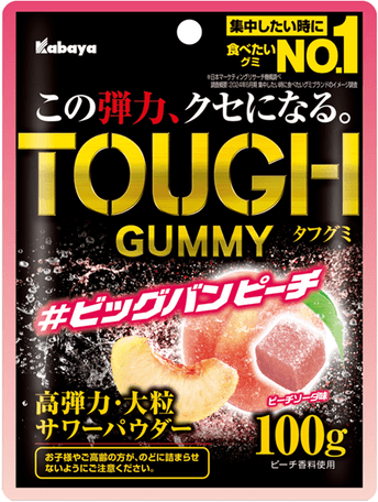 カバヤ食品株式会社は、“この弾力、クセになる。”のコピーでおなじみ、独自の高弾力が特長の『TOUGH GUMMY(タフグミ)』ブランドより、期間限定製品『タフグミ ビッグバンピーチ』を8月5日(火)より全国で発売しますので、お知らせします。