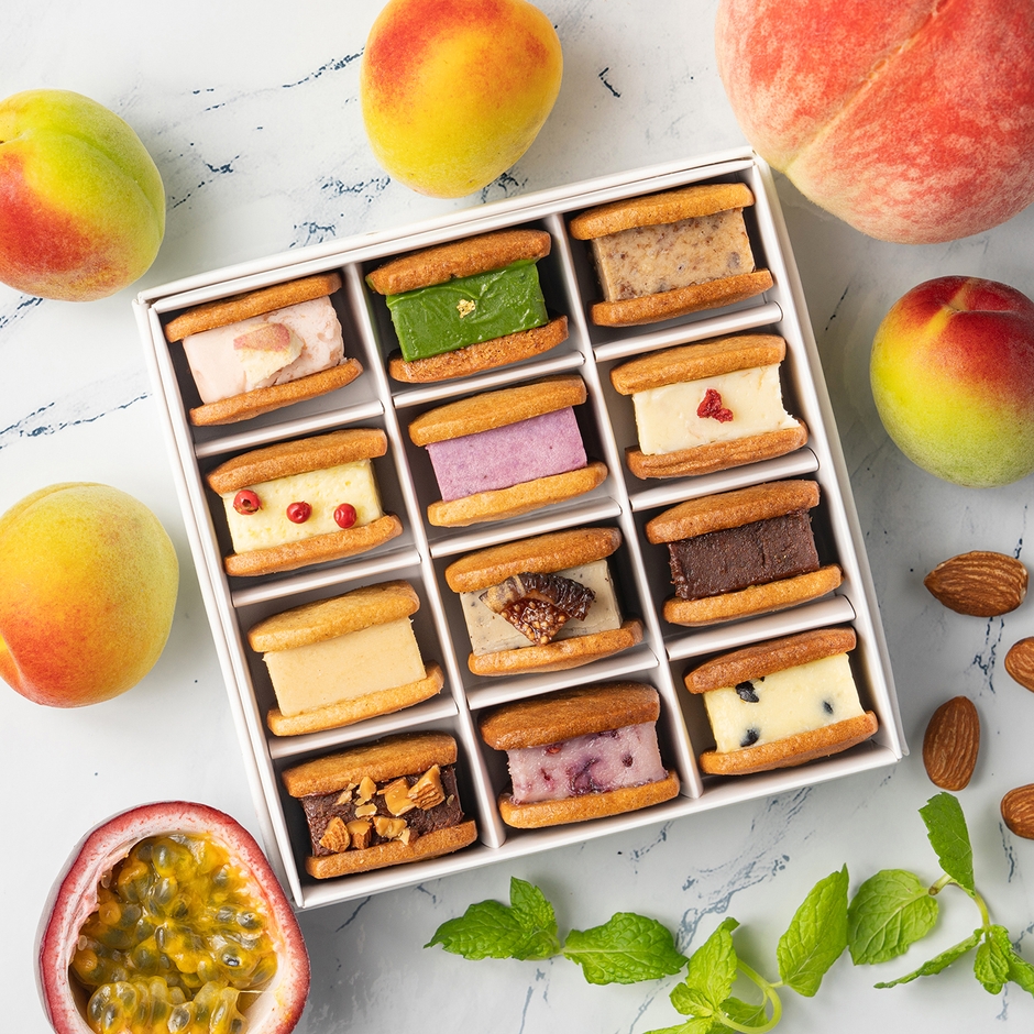 この夏限定のフレーバーは、フルーツ王国・和歌山特産のあら川の桃やいちじく、新しょうが、南高梅などを取り入れたバターサンドと、全国で幻とも称される日本酒・龍神丸(高垣酒造)の大吟醸酒かすとパッションフルーツを合わせたバターサンドをお届けします。