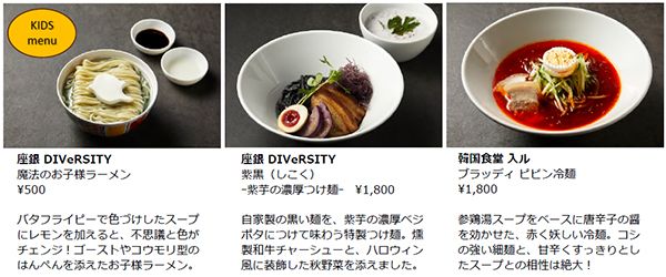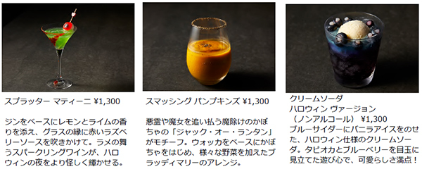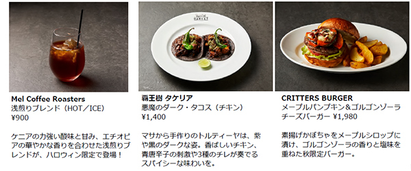 各店舗が用意するハロウィン限定メニュー(別料金)も登場!