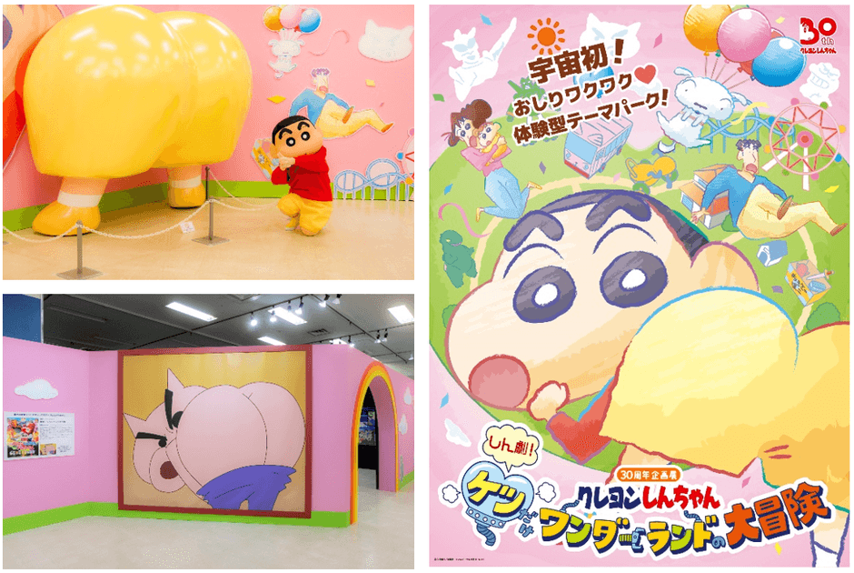 クレヨンしんちゃん30周年企画展 『しん劇!ケツだけワンダーランドの大冒険』ついに開幕!! 巨大なおしり出現!おケツだらけのテーマパーク。 初期アニメのセル画やおしりに触れられる展示も! 12/17(土)より池袋・サンシャインシティにてオープン