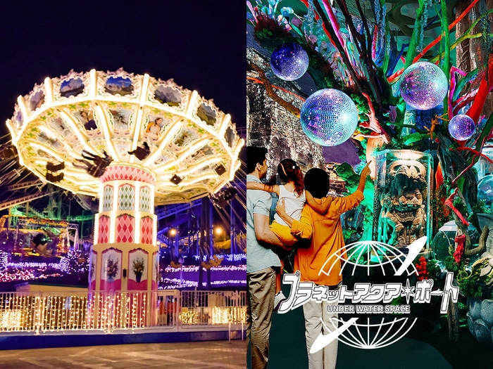 ③ 20種類以上のナイトアトラクションと新アクアリウム施設「プラネットアクア・ポート」でロマンチックに夜の遊園地を楽しめる!「サイクルモノレール」はイルミネーション仕様に!