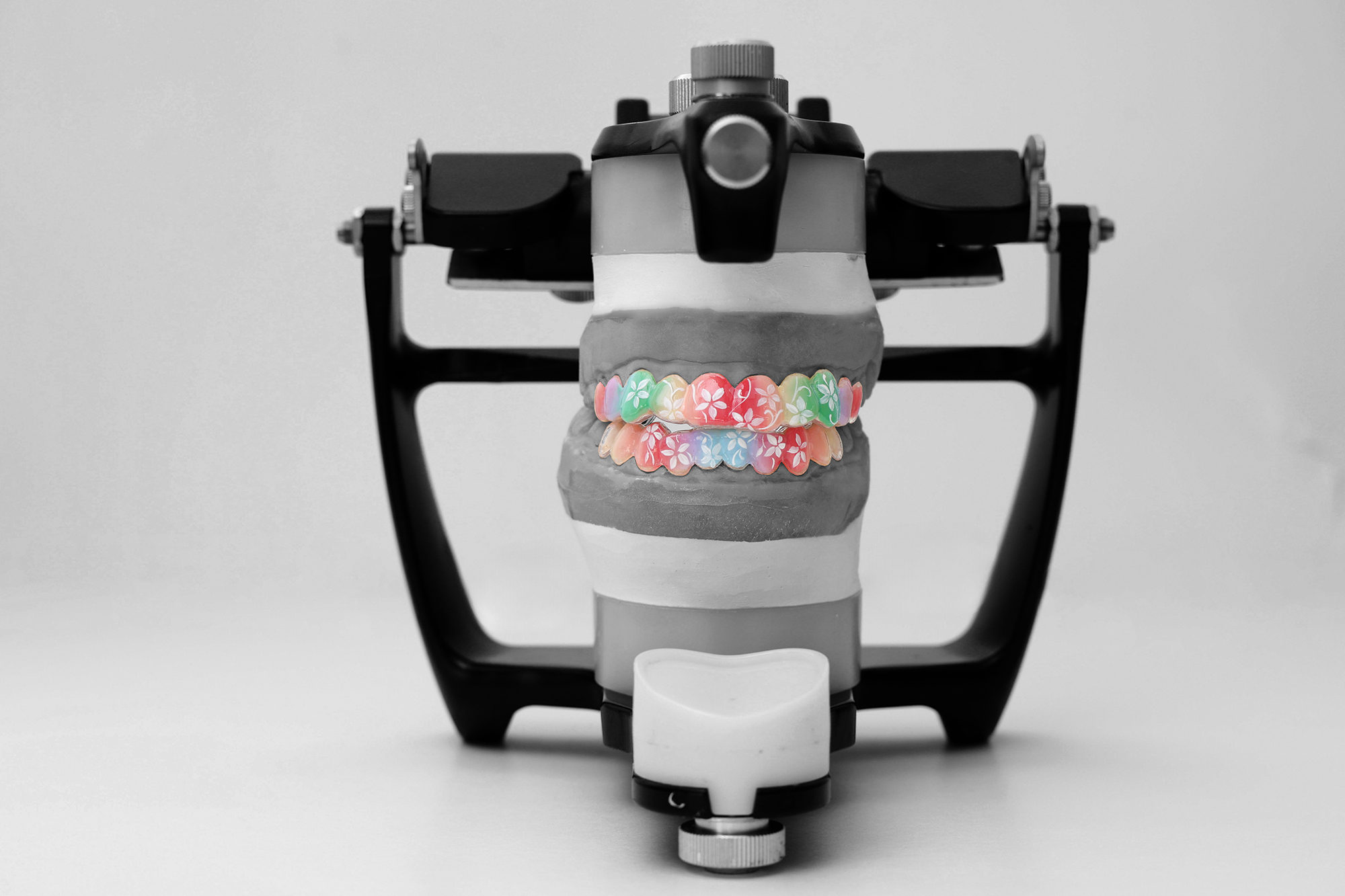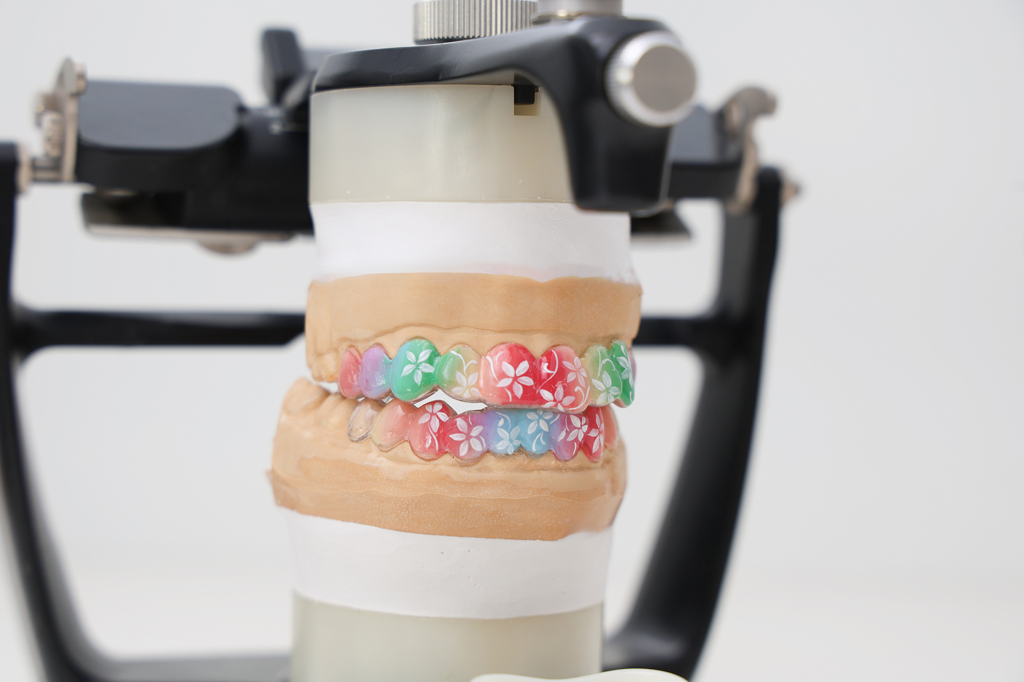 歯科技工のDSデンタルスタジオでは、透明または白色のマウスピースにアートを施すモデルを製作して、Instagramで作品を公開するなど、アートとしての歯科技工の可能性に挑戦しています。