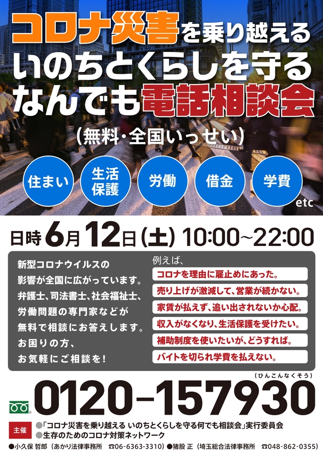 主催 :コロナ災害を乗り越える いのちとくらしを守る なんでも電話相談会実行委員会