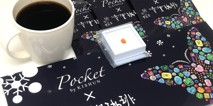 Pocket by KISHUN×雪室珈琲!!|ジュエリーメーカー『貴瞬(KISHUN)』が『Pocket by KISHUN』ブランド発足記念のクラウドファンディングを実施。お土産品で話題の新潟・雪室珈琲との異業種コラボで再研磨宝石とサステナブルジュエリーのブランド認知向上を図る。