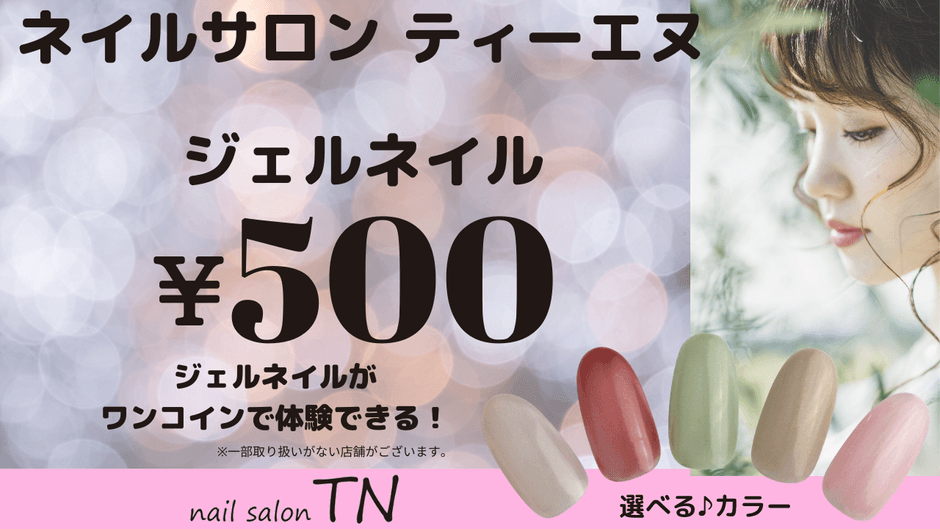 ジェルネイルを500円&施術時間15分! ネイルサロン ティーエヌ、ご新規様向けメニュー提供開始