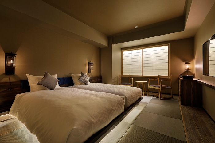 館内は「和モダン」をテーマに統一されたデザインで、客室にはタタミを採用することで日本らしいくつろぎの空間を演出しています。「もう1つの居場所」として1階に設置された、リビングロビー「御茶蔵の間(みさくらのま)」ではフリードリンクを飲みながら快適な時間をすごせます。