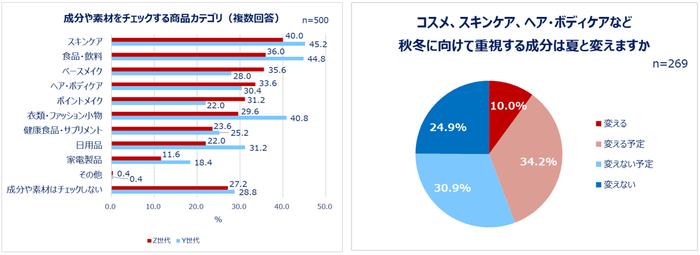 半数近くが秋冬に向けてコスメ等の重視する成分を変える