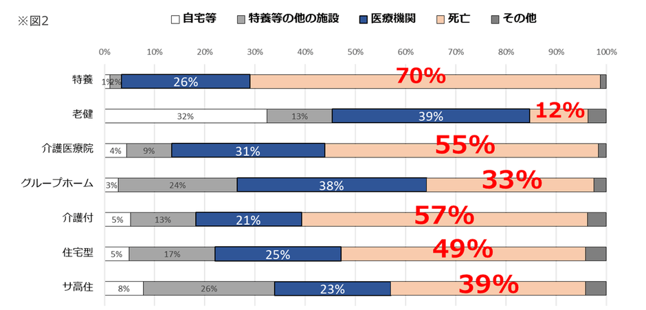 - 施設タイプ別の退去先傾向【死亡退去の割合が7割を占める特養】