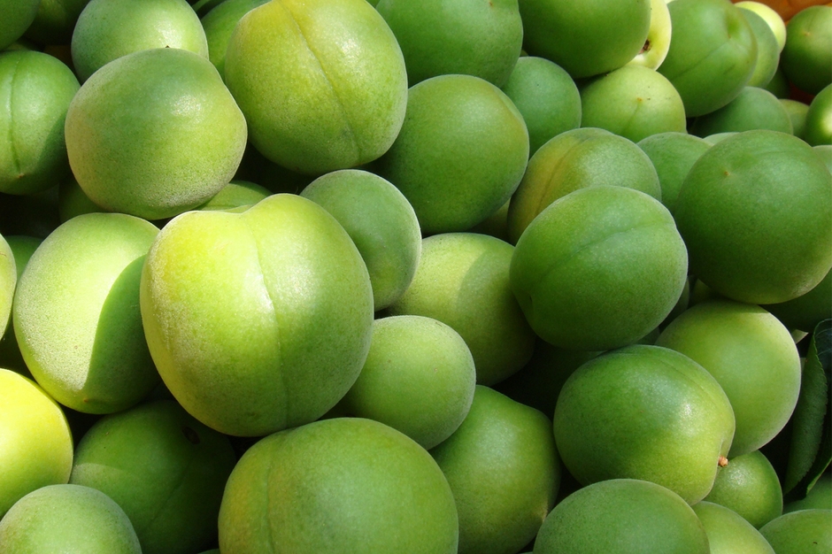特徴:城州白(※品種名)はほとんどが京都府南部に位置する城陽市の青谷地域でのみ栽培される希少性の高い品種で、大粒で果肉が厚く、桃のような芳醇な香りを漂わせます。創業者の芝田清次が菓子に合う素材としての梅を探し求め、多数の品種の中からたどりついたものが城州白でした。