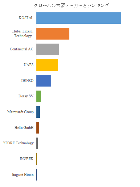 LP Informationのトップ企業研究センターによると、車載向け超広帯域 (UWB)の世界的な主要製造業者には、KOSTAL、Hubei Linksci Technology、Continental AG、UAES、DENSO、Desay SV、Marquardt Group、Hella GmbH、YFORE Technology、INGEEKなどが含まれている。2024年、世界のトップ5企業は売上の観点から約90.0%の市場シェアを持っていた。