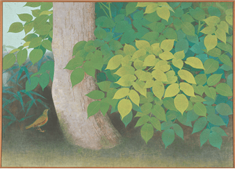上村松篁「樹蔭」(昭和23年) 上村松篁「羊と遊ぶ」(昭和13年)
