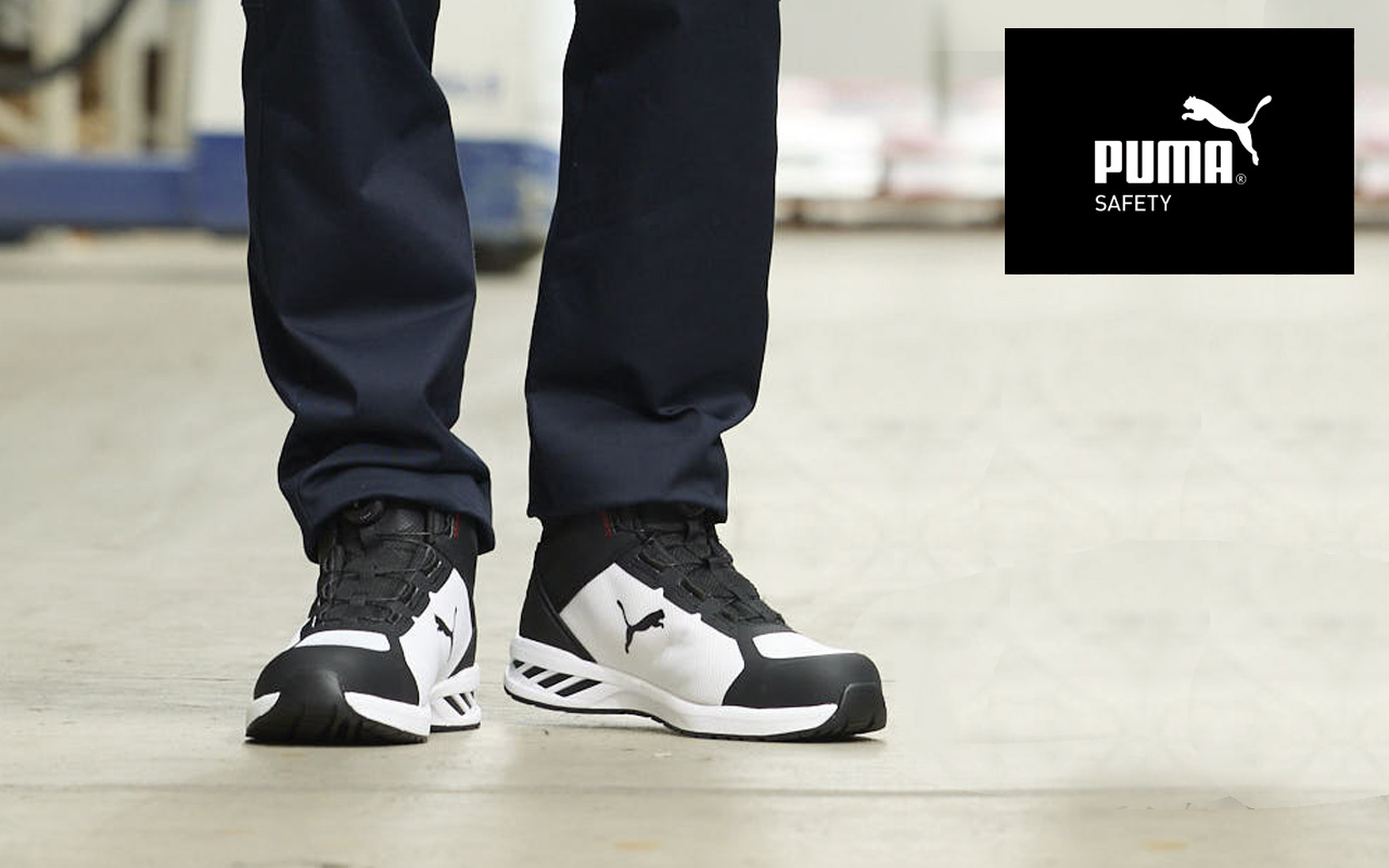 PUMAのセーフティシューズライン“PUMA SAFETY”は、作業現場での怪我のリスクから足を守る安全性に、スポーツブランドならではのテクノロジーを融合。スタイリッシュで、普段履きにもなじむスポーティなデザインが特徴です。