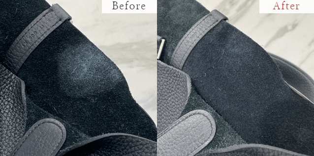 「角が擦れて、スエードの毛が寝てしまっている」