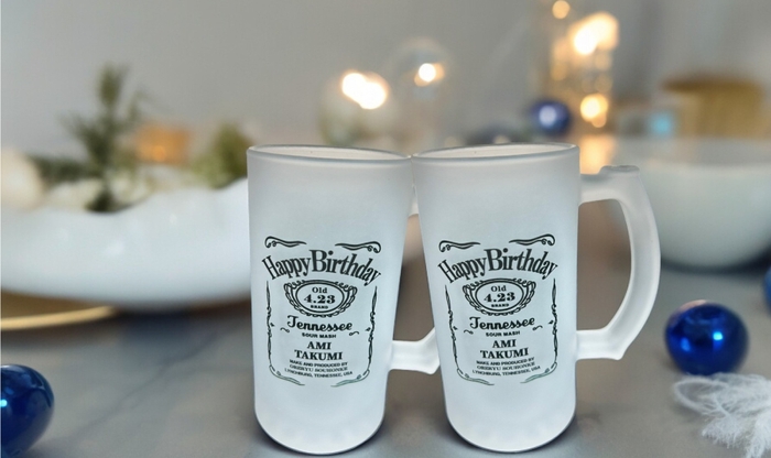 俺流総本家の記念日名入れシリーズは、お二人の名前と大切な日付を品質にこだわった商品に刻み込むことで、一生の記念品に変えるサービスです。お祝いの日の乾杯用のジョッキから、お揃いで着用できるTシャツ、タオルなど、各種ラインナップから選べます。