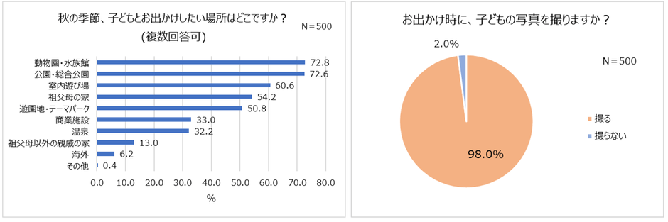1.秋の季節、子どもとお出かけしたい場所「動物園・水族館」「公園・総合公園」が人気傾向