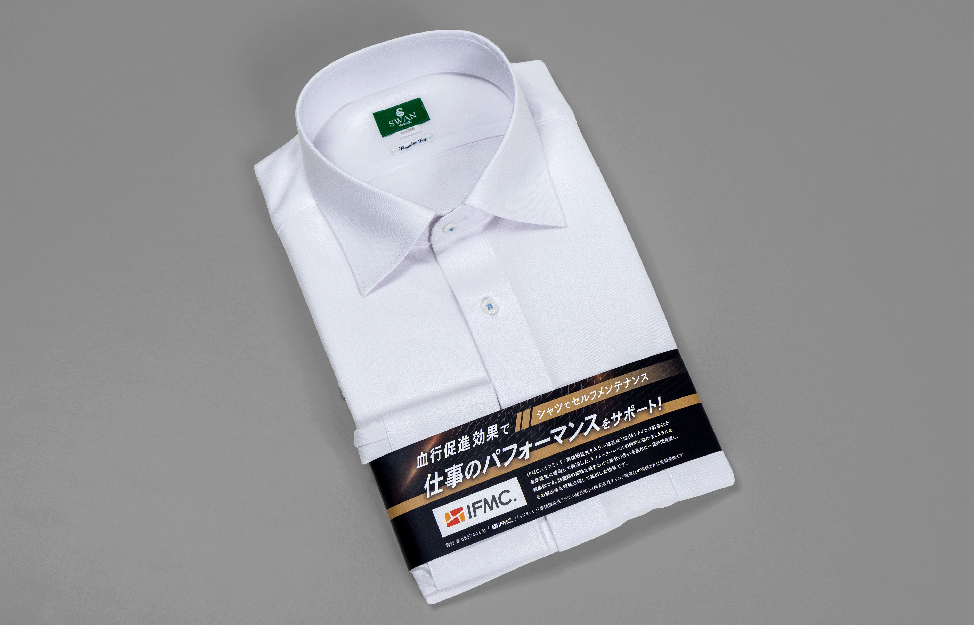 "着る温泉"でビジネスを加速! IFMC.加工「SWAN 血行促進ノンアイロンドレスシャツ」誕生