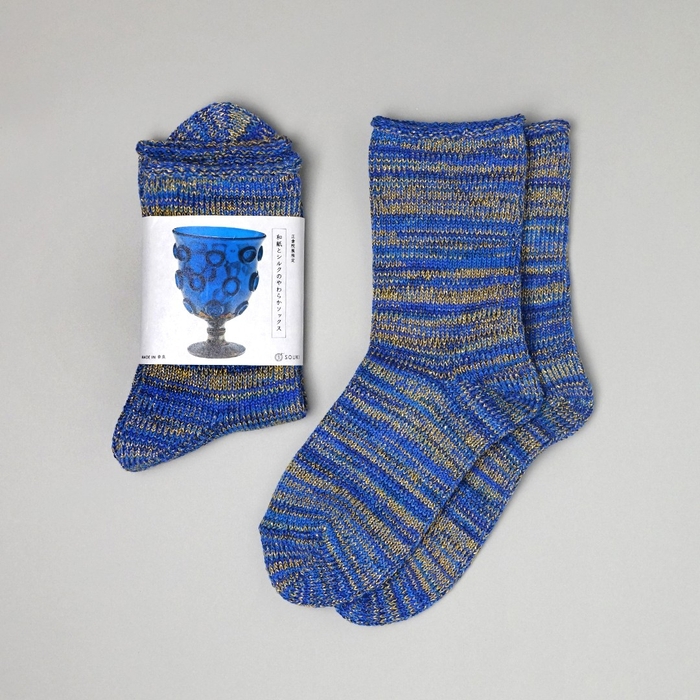 この宝物が持つ瑠璃色の世界を、「SOUKI ORIGINAL - 和紙とシルクのやわらかソックス -」で表現しました。