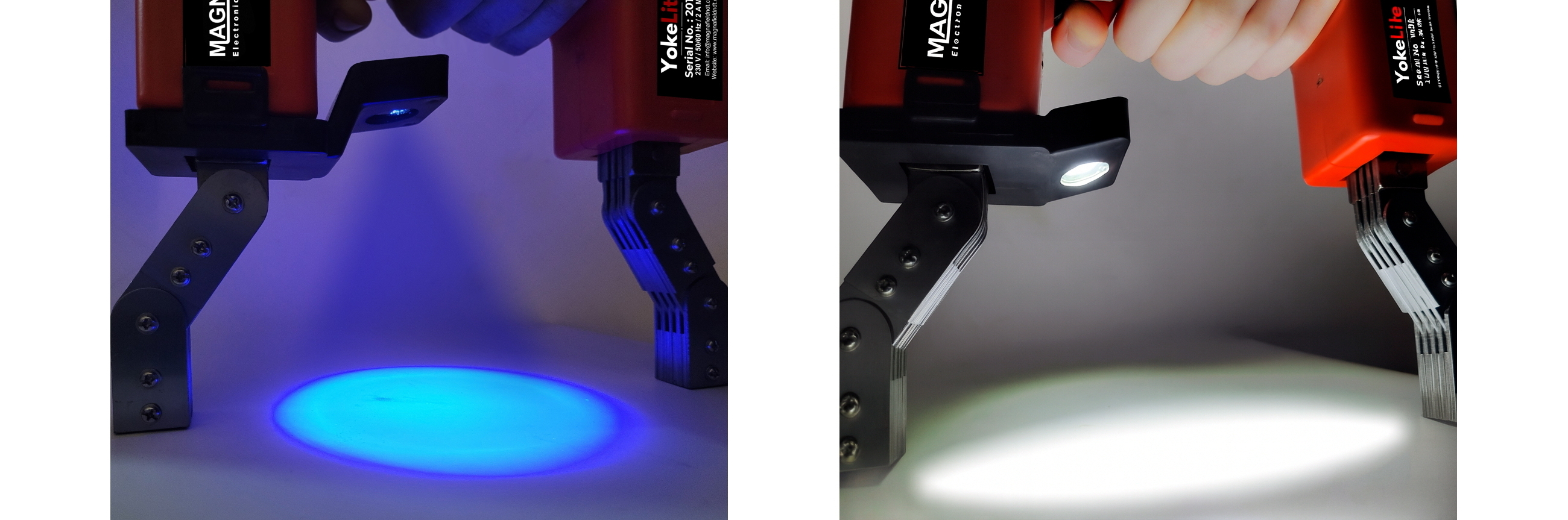 『YokeLite-100V』は、実用性を追求したデザインで、スムーズな探傷に求められる性能・機能・使いやすさを全て兼ね備えたハンドマグナ(極間式磁化器)です。