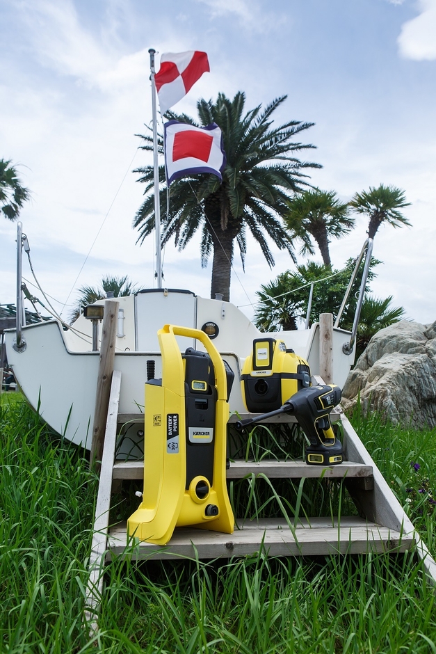 ー釣り、クルージングを楽しむ際もケルヒャーが最適ー コードレスのバッテリー式高圧洗浄機と乾湿両用掃除機で 船舶掃除を手軽に!