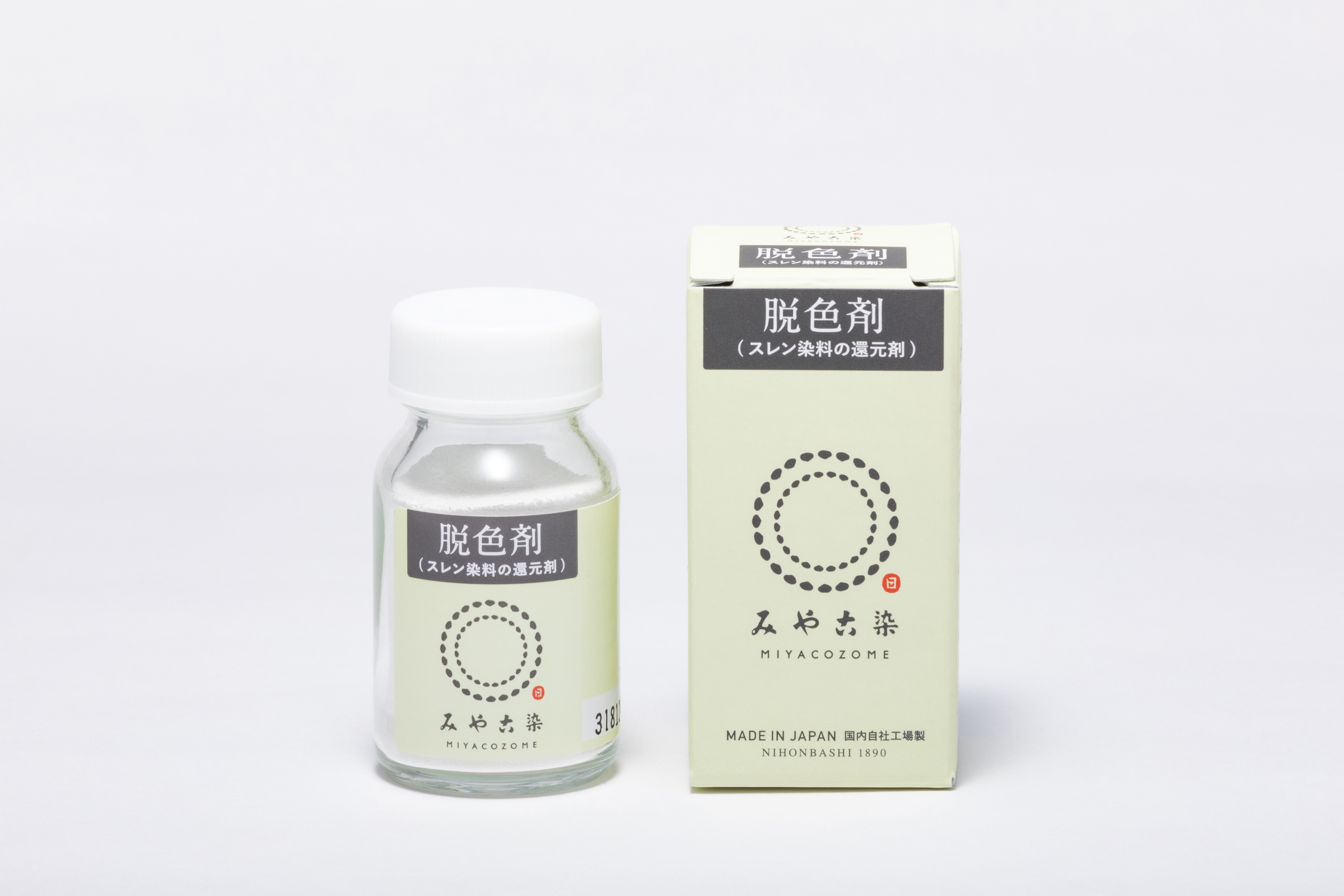 再度染色をする目的で、一旦色を抜く場合には、当社の脱色剤(還元系漂白剤)をお勧めいたします。再染色に支障がない程度に穏やかに脱色する商品です。