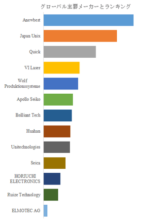 一方、欧州ではWolf Produktionssysteme(ドイツ)、VI Laser(イタリア/ドイツ系)、ELMOTEC AG(スイス/ドイツ系)などが、自動車電子機器、医療機器、産業機器といった高信頼性・高耐久性を要求される用途に対して、より堅牢で高性能なフロア型/量産ライン型のレーザーはんだ付け装置を提供している。これらは単なる部品実装にとどまらず、自動組立ラインの中核技術として、量産効率と品質の両立を狙う戦略をとっている。このように、地域および用途ごとに、コスト重視型/高信頼型/カスタムソリューション型の三層構造的な市場展開が進んでおり、結果としてレーザーはんだ付け装置市場全体が多様性と安定性を兼ね備えたバランスの良い産業構造を形成している。